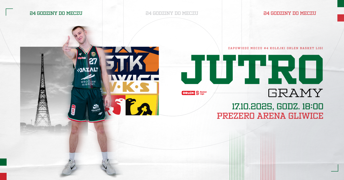 Mecz 4. kolejki ORLEN Basket Ligi pomiędzy Tauron GTK Gliwice a WKS-em Śląskiem Wrocław odbędzie się 17 października o godzinie 18:00 w małej hali PreZero Areny w Gliwicach. Darmowa transmisja dostępna będzie na kanale YouTube ORLEN Basket Ligi.