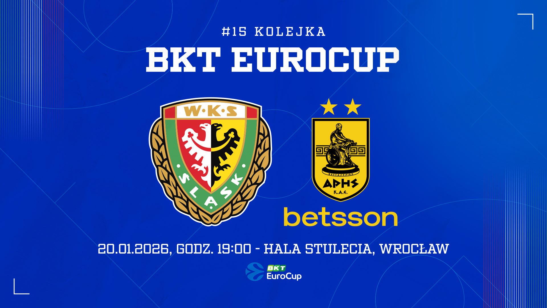 Starcie Śląsk – Aris już o godzinie 19:00 w Hali Stulecia. Bilety dostępne są na wks-slask.abilet.pl.