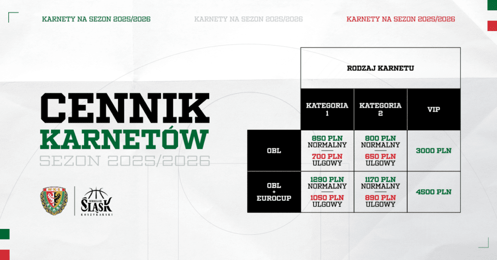 Karnety na sezon 2025/2026 można kupić wyłącznie online za pośrednictwem serwisu Abilet.pl lub na stronie internetowej wks-slask.eu w zakładce „KUP BILET”. W pierwszej kolejności należy wybrać rodzaj karnetu, następnie miejsce w Hali Orbita, a na koniec miejsce w Hali Stulecia. Tym samym do jednego karnetu przypisane będzie po jednym miejscu w dwóch halach, w których WKS Śląsk Wrocław będzie rozgrywał swoje mecze w nadchodzącym sezonie.